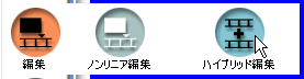 MotionDV STUDIOで映像や音声を編集するには、編集モードにして作業します。編集モードには、ノンリニア編集モードとハイブリッド編集モードの2種類の操作モードがあります。![]() ノンリニア編集モード 取り込んだ映像をもとに特殊効果などを活用し編集する場合はこのモードで操作します。 ![]() ハイブリッド編集モード 2台のデジタルビデオ機器を使って、映像や音声をダビングしながらつないでいくリニア編集をおこなう場合や、リニア編集とノンリニア編集の両方の方法で編集するハイブリッド編集をおこなう場合はこのモードで操作します。 ※MotionDV STUDIOラーニング・キットで説明する編集はすべて「ノンリニア編集モード」でおこなっています。 |