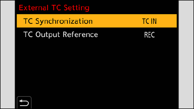 –[TC Synchronization] ([External TC Setting] in [Time Code]): [TC IN]