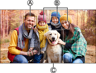 Lorsqu’une partie d’un humain ou d’un animal entre dans la zone AF [1-zone], la zone AF de détection automatique est indiquée en jaune. La détection des yeux fonctionne lorsque le visage d’une personne se trouve à l’intérieur de la zone AF.