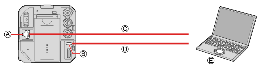 En raccordant l’appareil photo directement à un ordinateur à l’aide d’un câble de connexion USB ou d’un câble LAN, vous pouvez vous connecter à « LUMIX Tether » avec le réglage par défaut. Passez à l’étape 2. (Exécutez à partir de l’étape 1 si vous modifiez le réglage par défaut de [LAN/Wi-Fi] ou de [Mode USB] dans le menu [Config.] ([ENTREES/SORTIES]).) Lors de la connexion Wi-Fi, affichez l’écran de menu de l’appareil photo via HDMI/SDI sur un moniteur externe, etc. (Raccordement du moniteur externe) |
