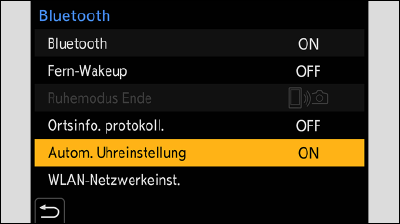 1Aktivieren Sie [Autom. Uhreinstellung] an der Kamera.