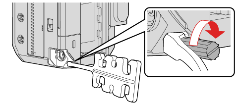 1قم بتركيب شريط تثبيت الكبل بشكل غير محكم في قاعدة شريط تثبيت الكبل على الكاميرا، ثم قم بتدوير البراغي في اتجاه الأسهم لتأمين شريط تثبيت الكبل.