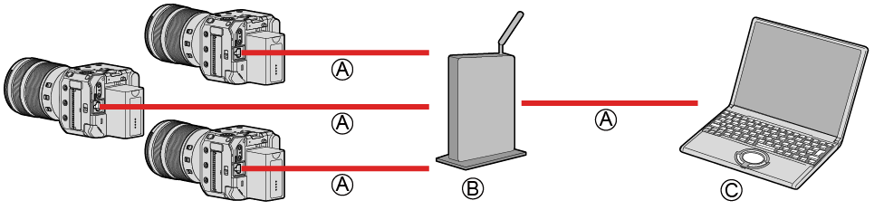 في الإعداد الافتراضي، تكون الكاميرا مضبوطة على خادم DHCP. من خلال توصيل الكاميرا مباشرة بجهاز الكمبيوتر الخاص بك باستخدام كبل LAN، يمكنك توصيل الكاميرا بالكمبيوتر دون إعداد معلومات الشبكة يدويًا مثل عنوان IP.