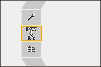 [Slot carte de destination] : Vous pouvez choisir le logement pour carte vers lequel sauvegarder les images traitées avec RAW. Lorsque [AUTO] est sélectionné, l’image est sauvegardée vers le même logement pour carte que l’image au format RAW qui doit être traitée.