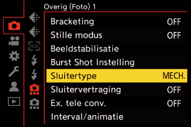 Selecteer het sluitertype dat u wilt gebruiken voor het opnemen van de foto's.