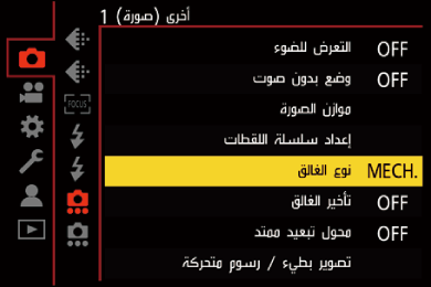 يتيح هذا الإعداد تغيير نوع الغالق تلقائيًا حسب حالات التسجيل وسرعة الغالق.