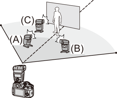 將無線閃光燈設定為[RC]模式,然後放置無線閃光燈。