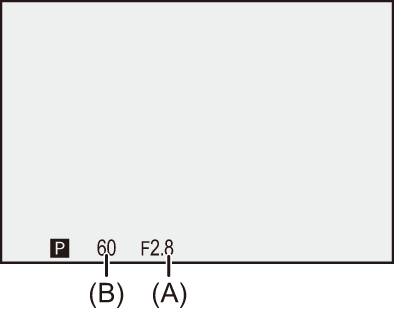 bullet02If the correct exposure is not achieved, the aperture value (A) and shutter speed (B) blink red.