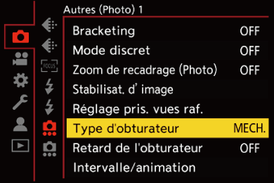 Permet de sélectionner le type d’obturateur à utiliser pour prendre des photos.