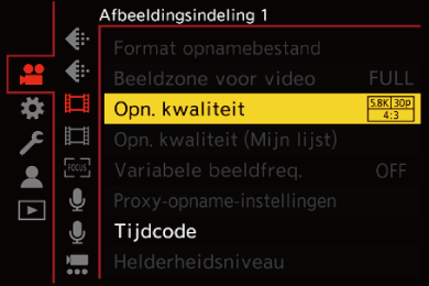 [Beeldzone voor video] staat vast op de beeldzone overeenkomstig de [Opn. kwaliteit]-instelling.