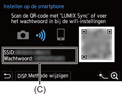 Selecteer op het set-upscherm van Wi-Fi de SSID (C) die op de camera weergegeven wordt.