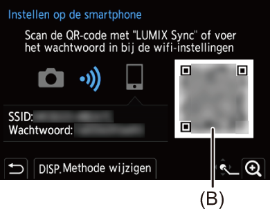 Scan de QR-code die op het scherm van de camera weergegeven wordt met gebruik van “LUMIX Sync”.