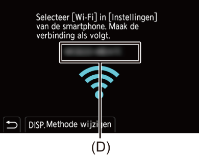 De SSID (D) van de camera wordt op het scherm weergegeven.
