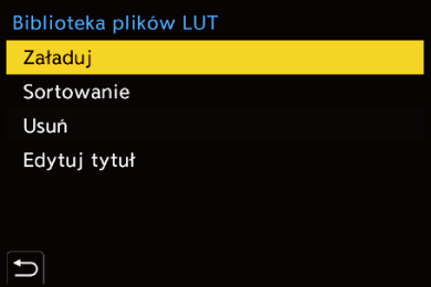 Kolejność wyświetlania plików LUT można zmieniać wybierając [Sortowanie].
