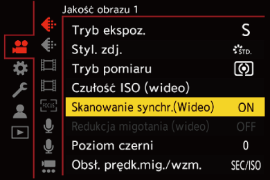 Na ekranie ustawień skanowanie synchr. można wywoływać i regulować aktualną szybkość migawki dla normalnego nagrywania.