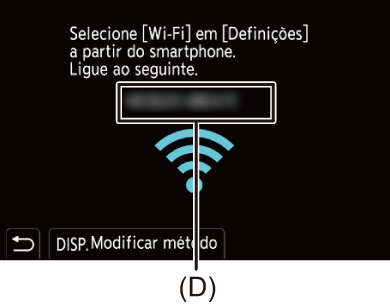 No ecrã de definições do Wi-Fi, selecione o SSID (C) apresentado na câmara.