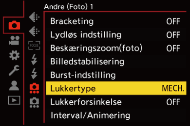 Vælger den lukkertype, der skal bruges til at tage billeder.
