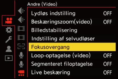Hvis du har aktiveret [Fokusovergang optage], starter fokusovergang, når du starter med at optage en video.