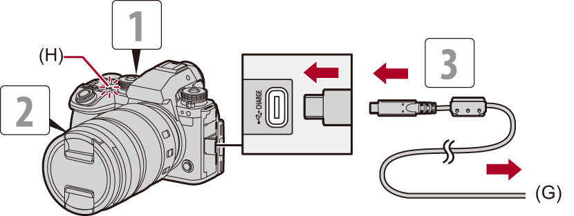 The charging light (H) turns red and charging begins.