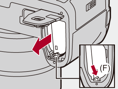 Push the lever (F) in the direction of the arrow and then remove the battery.