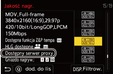 Pozycje dostępne dla nagrywania filmów z funkcją proxy są oznaczone jako [Dostępny serwer proxy].
