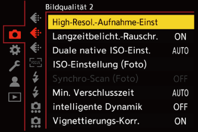 Wenn [High-Res-Aufn. aus der Hand] auf [ON] eingestellt ist, wird [Bewegungsunschärfe-Verarb.] fest auf [MODE2] eingestellt.