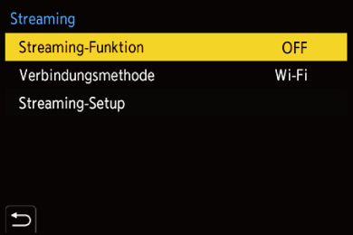 1. (Bei Gebrauch von Wi-Fi) Stellen Sie [Wi-Fi-Verbindungseinstellung] in [Streaming-Setup] ein. (character_referenceStreaming-Einstellungen)