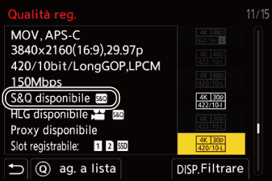 Le voci disponibili per la registrazione con video Lento & Rapido sono indicate come [S&Q disponibile].