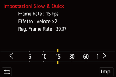 Ad esempio: Quando si registra a 15 fps quando è impostata una [Qualità reg.] 29,97p, la velocità viene raddoppiata.