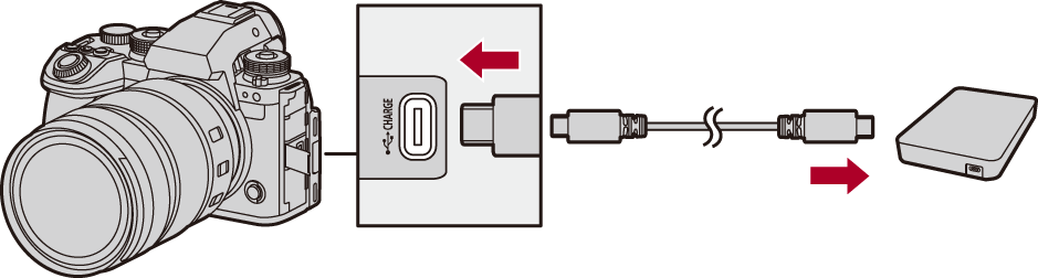 1. Verbind de camera en de externe SSD met de USB-aansluitkabel.