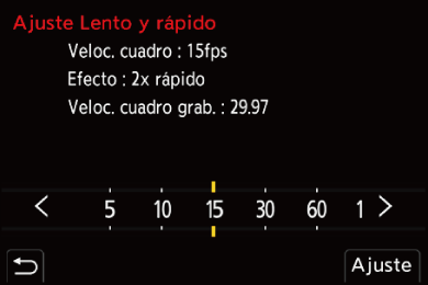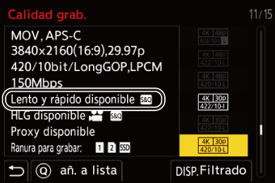 Los elementos disponibles para la grabación con vídeo Lento y Rápido se indican como [Lento y rápido disponible].