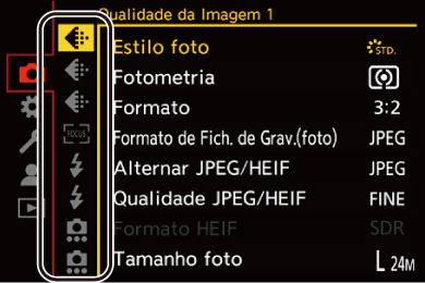 Nesta câmara, o menu é usado para definir um variado conjunto de funções e efetuar personalizações da câmara.