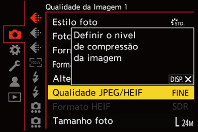 Se premir [DISP.] enquanto um item do menu ou definição estiver selecionada, é apresentada uma descrição sobre o item no ecrã.