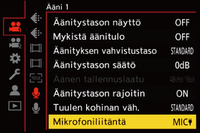 Kun liitetään ulkoinen mikrofoni, joka vaatii virransyötön kameran [MIC]-liittimestä.
