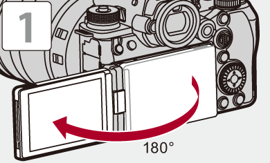 구입 시 모니터는 카메라 본체에 수납되어 있습니다. 사용하기 전에 모니터 표면을 밖으로 꺼내십시오.