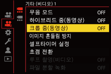 [크롭 줌(동영상)]을 [ON]으로 설정하면