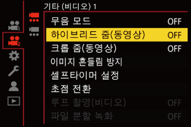 – [하이브리드 줌(사진)] – [하이브리드 줌(동영상)]