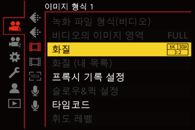 [비디오의 이미지 영역]은 [화질] 설정에 따른 이미지 영역으로 고정됩니다.