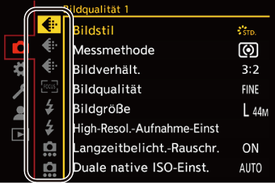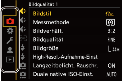 ]/[S&Q]. Wählen Sie den entsprechenden Modus aus, um das Menü [Foto] oder das Menü [Video] zu sehen. (