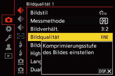 Wenn Sie [DISP.] drücken, während ein Menü- oder Einstellungselement ausgewählt ist, wird eine entsprechende Beschreibung auf dem Bildschirm angezeigt.