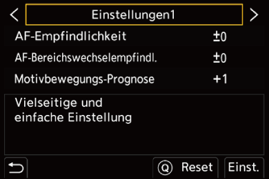 Drücken Sie auf [Q], um die Einstellungen auf die Standardwerte zurückzusetzen.