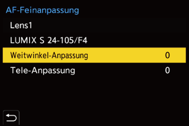 Wenn ein registriertes Objektiv angesetzt ist, wird der adjustierte Wert abgerufen, wenn er unter [ADJUST BY LENS] eingestellt ist.