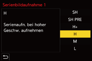 Wenn die Seriengeschwindigkeit [H+]/[H] ist, müssen Sie das Verhalten während der Serienbildaufnahme einstellen.