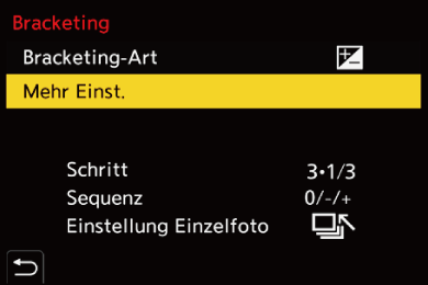 Informationen zu [Mehr Einst.] finden Sie auf den jeweiligen Seiten zu den Bracketing-Methoden.