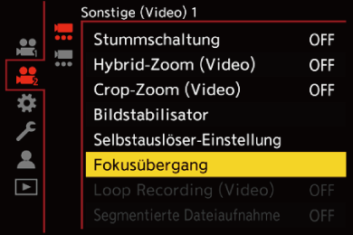 Wenn [Fokusübergang Aufn.] aktiviert ist, wird der Fokusübergang gestartet, wenn Sie eine Videoaufnahme starten.