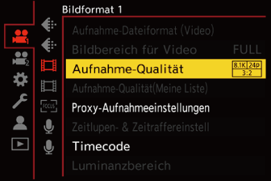 [Aufnahme-Qualität] (Wenn [RAW-Datenausgabe über HDMI] ausgewählt ist)