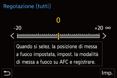 Il punto di messa a fuoco viene spostato indietro quando regolato con il lato [+]. Il punto di messa a fuoco viene spostato avanti quando regolato con il lato [−].