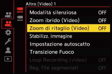 Impostare [Zoom di ritaglio (Video)] su [ON].