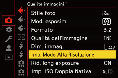 Quando [Alta risoluzione portatile] è impostato su on, è possibile registrare foto con una risoluzione maggiore senza usare un treppiede.