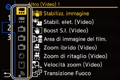 Selezionare le schede [1] a [3] premendo [Q].